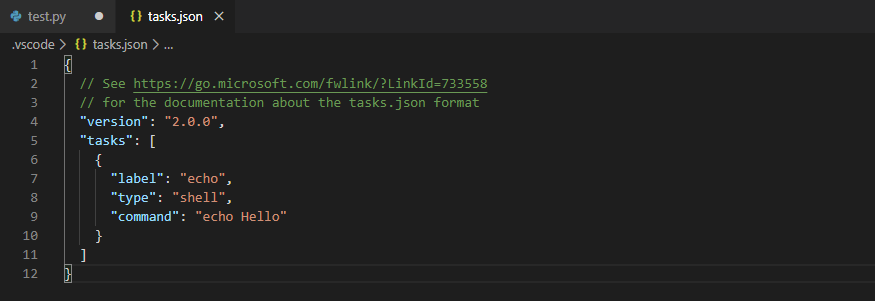 그럼 아래와 같이 tasks.json파일이 생성된다.