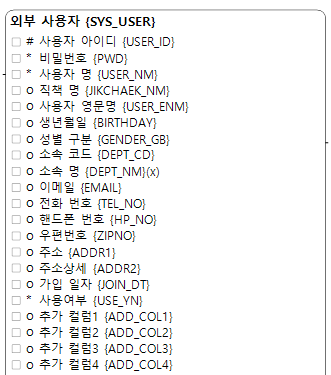 보통 실무에서는 간단히 하더라도 대략 저런 형태의 모델을 작성을 많이 한다. 여기서 복잡하니 사용자 아이디, 사용자 명, 생년월을 정도만 가지고 예제를 만들어보자