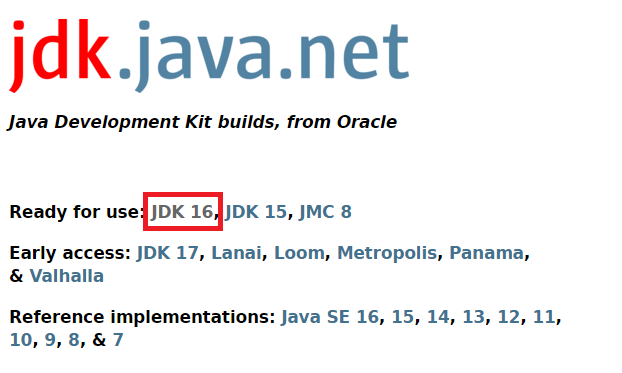 접속 메인 페이지에서 아래와 같이 Ready for use에서 JDK 16을 선택 (강제는 아님, 나는 16 버전을 쓰는 거)