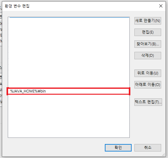 path 부분에 %JAVA_HOME%\bin 추가
