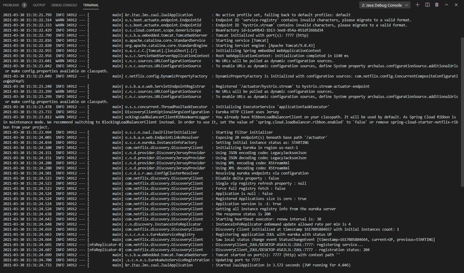 다음 글에서는 마이크로 서비스들 간의 통신에 사용하는 메시지 큐 Netflix Kafka에 대해서 알아보고 지금과 같이 기본 세팅을 해보는 것으로 하겠다.