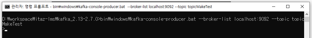 bin\windows\kafka-console-producer.bat --broker-list localhost:9092 --topic topicMakeTest