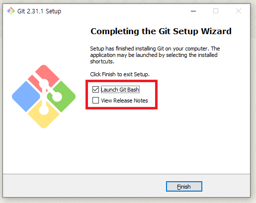 설치가 끝나면, 릴리즈 노트는.. 볼 필요가 없을 것 같고 git bash를 실행한다.