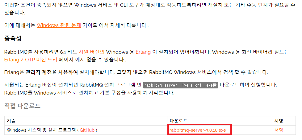 RAbbitMQ설치를 위해 이곳을 방문해서 보니 Erlang이 설치되어야 한다고 해서 Erlang을 먼저 받아서 설치하고, RAbbitMQ를 설치하였다.