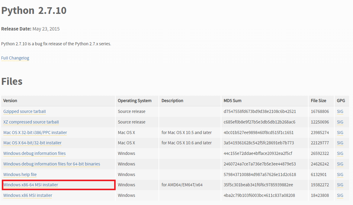 가이드에서는 Python 2.7.6을 설치하라고 되어있지만 나는 설치하고 나서 보니 2.7.10이었으나 이상 없이 동작하였다.