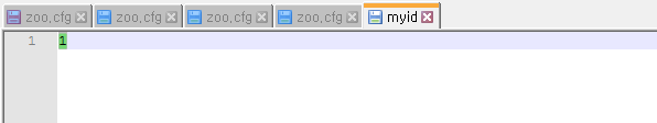 그리고 /data폴더에 myid라는 파일을 생성(확장자 없음) 내용은 공백 없이 숫자 1을 작성한다. zookeeper2의 경우 숫자 2, zookeeper3의 경우 숫자 3